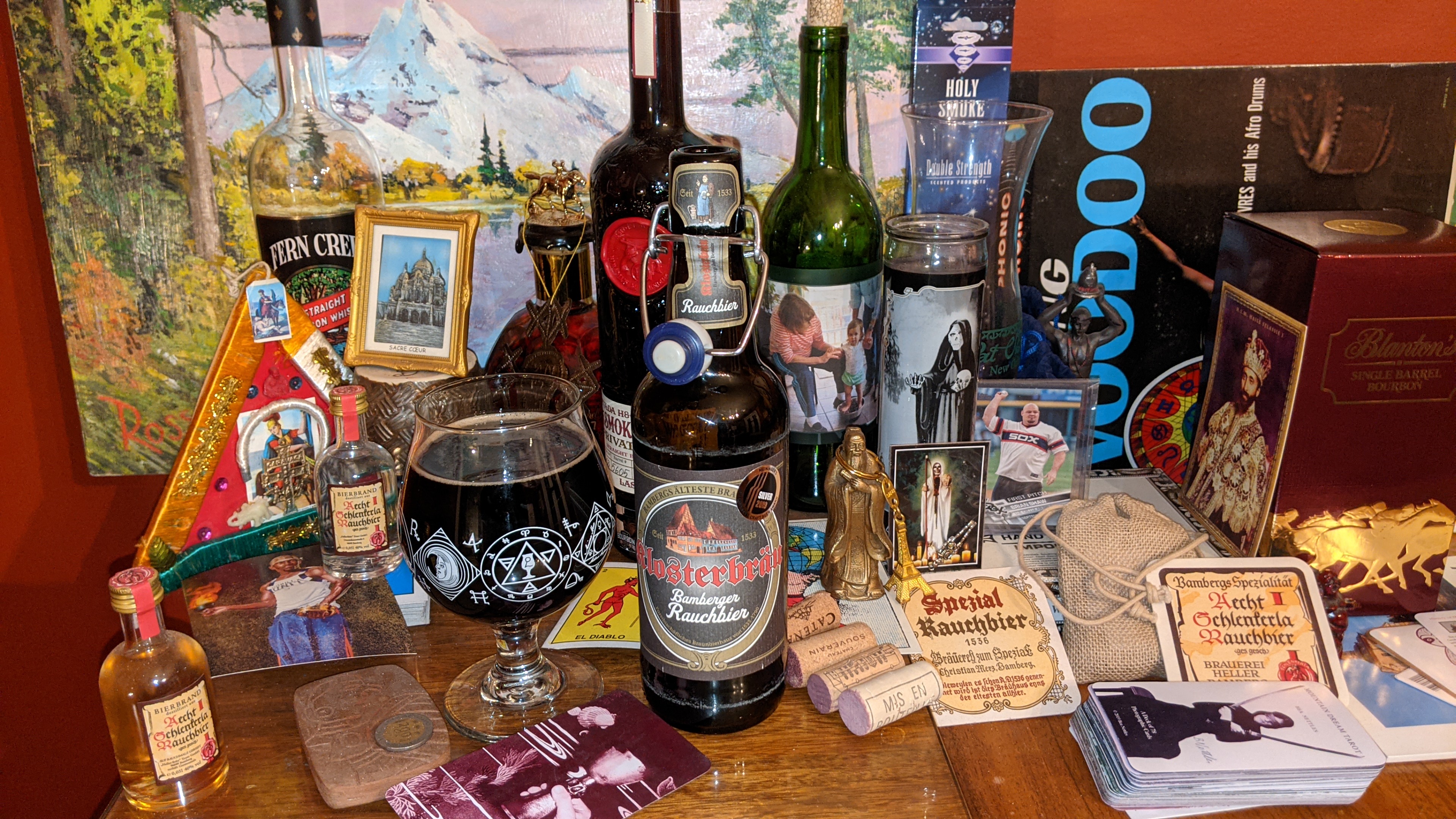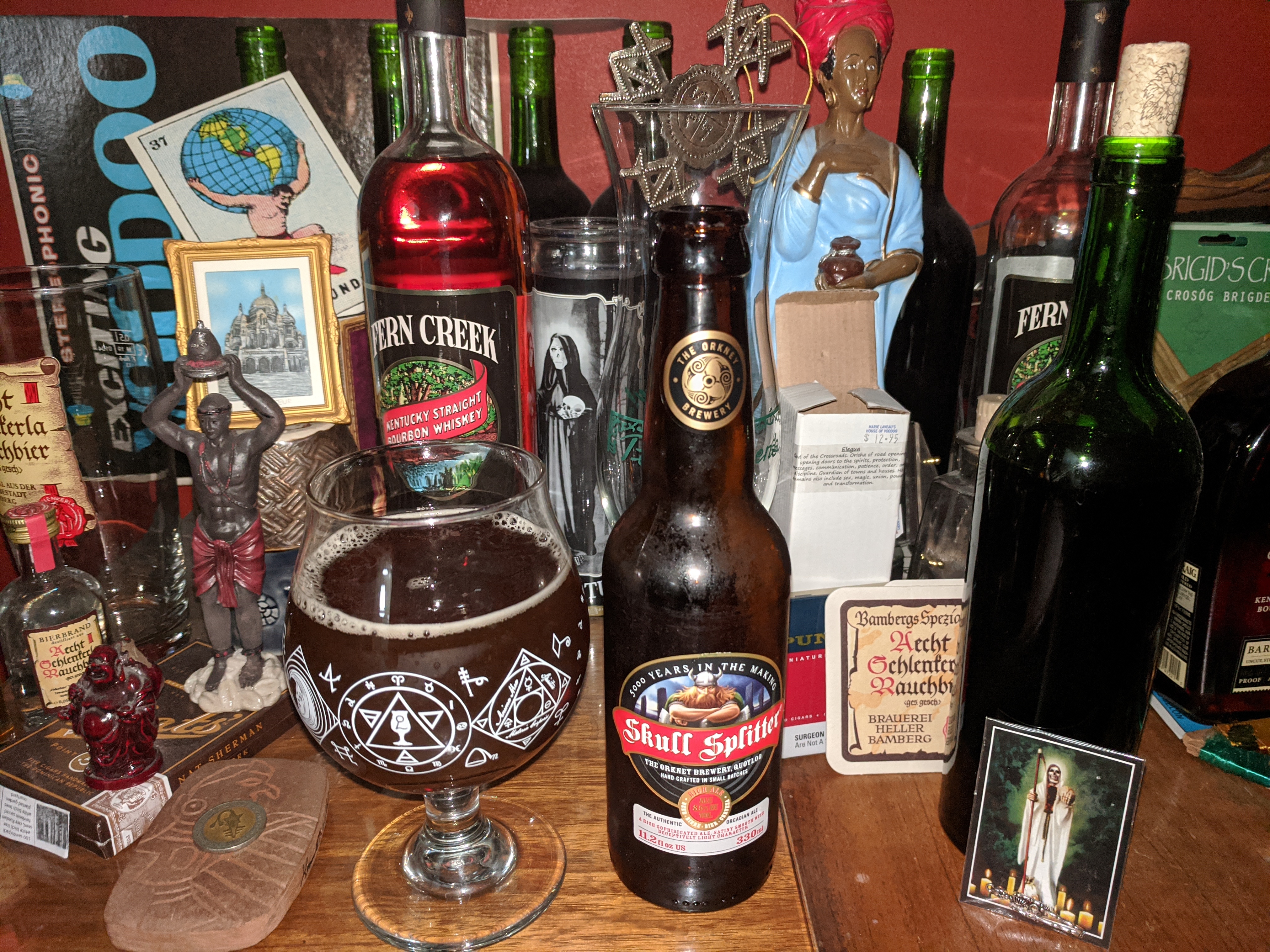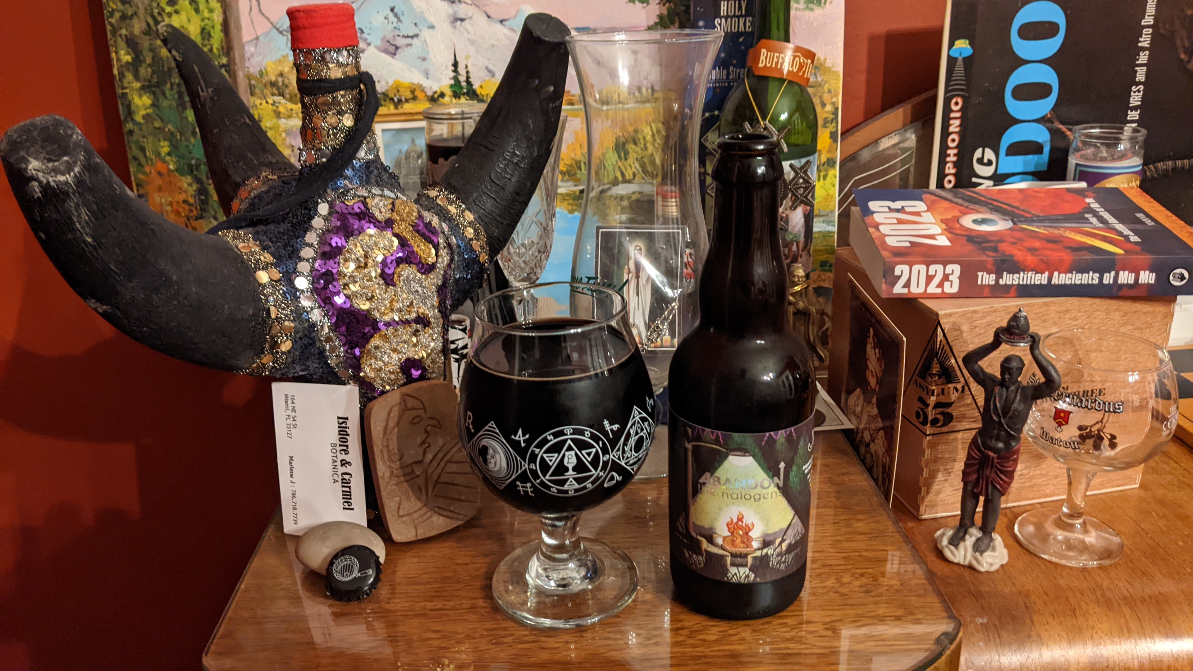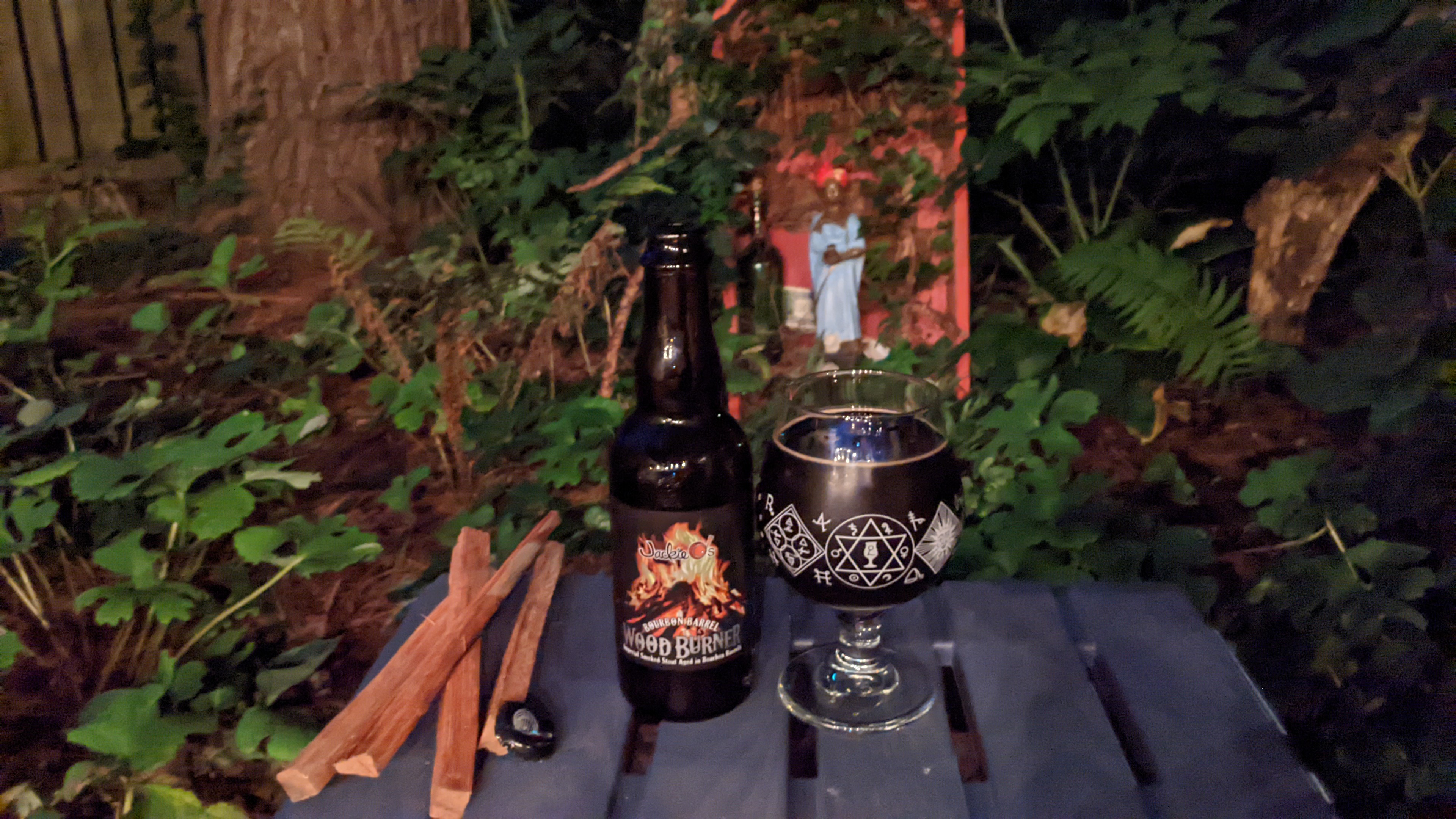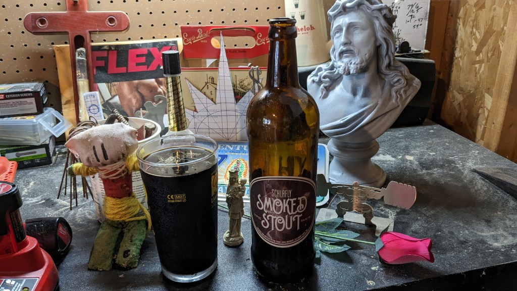 I’m in the garage today so I apologize for the rudimentary voodoo altar. But first, this beer. Pours like molasses. Looks like molasses. Thick. And the head on this is far darker than George Hamilton ever wanted to be (appears to have fizzled by the time I took the foto). Plus, 9.5% alcohol by volume, and who’s ever complained about too much booze in a beer? Not the ministry. Low on smoke which is surprising given that they used beechwood smoked malts. Notes of smoke are in there however, deep down somewhere, and pouring it over the palate doesn’t bring it to cognition more readily. No, you have to search for it, as I search for these beers. High on sweetness like the heart of a child. There is good in this beer. There is good in all of us, but sometimes we must be the seeker. I don’t find comfort in prayer, but instead in practice. And I ask that you all go forth and see the good others, and please help me find my Uber if I’m outside staggering around aimlessly. I will offer a blessing. 5.5 smokestacks awarded out of a 1-7 smokestack scale.