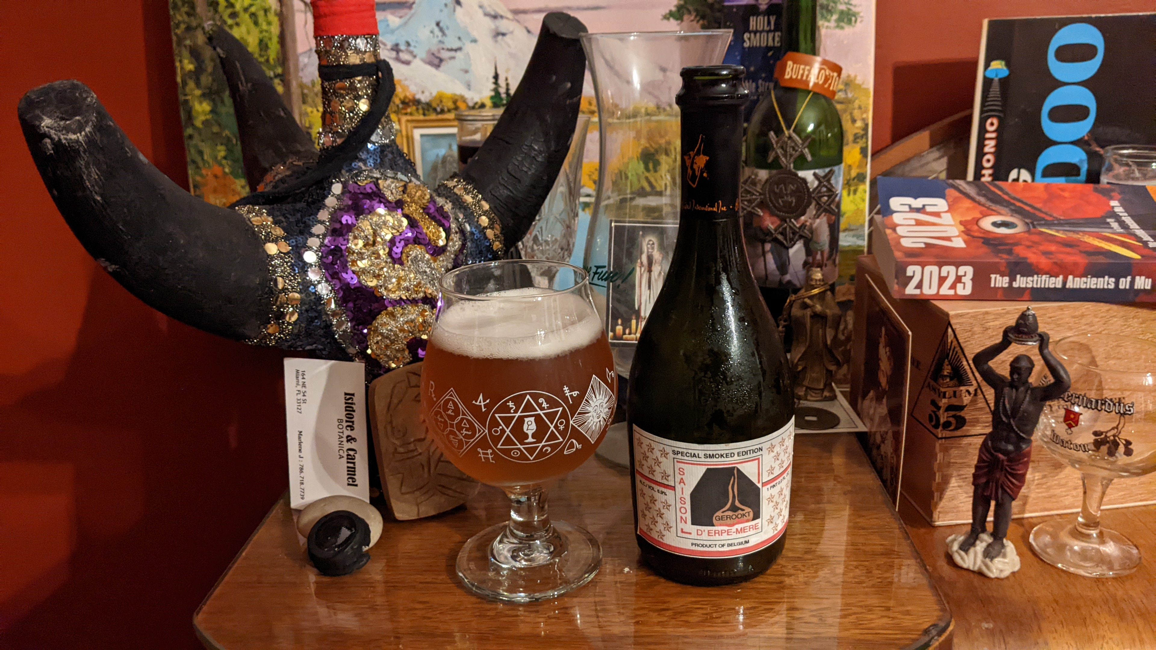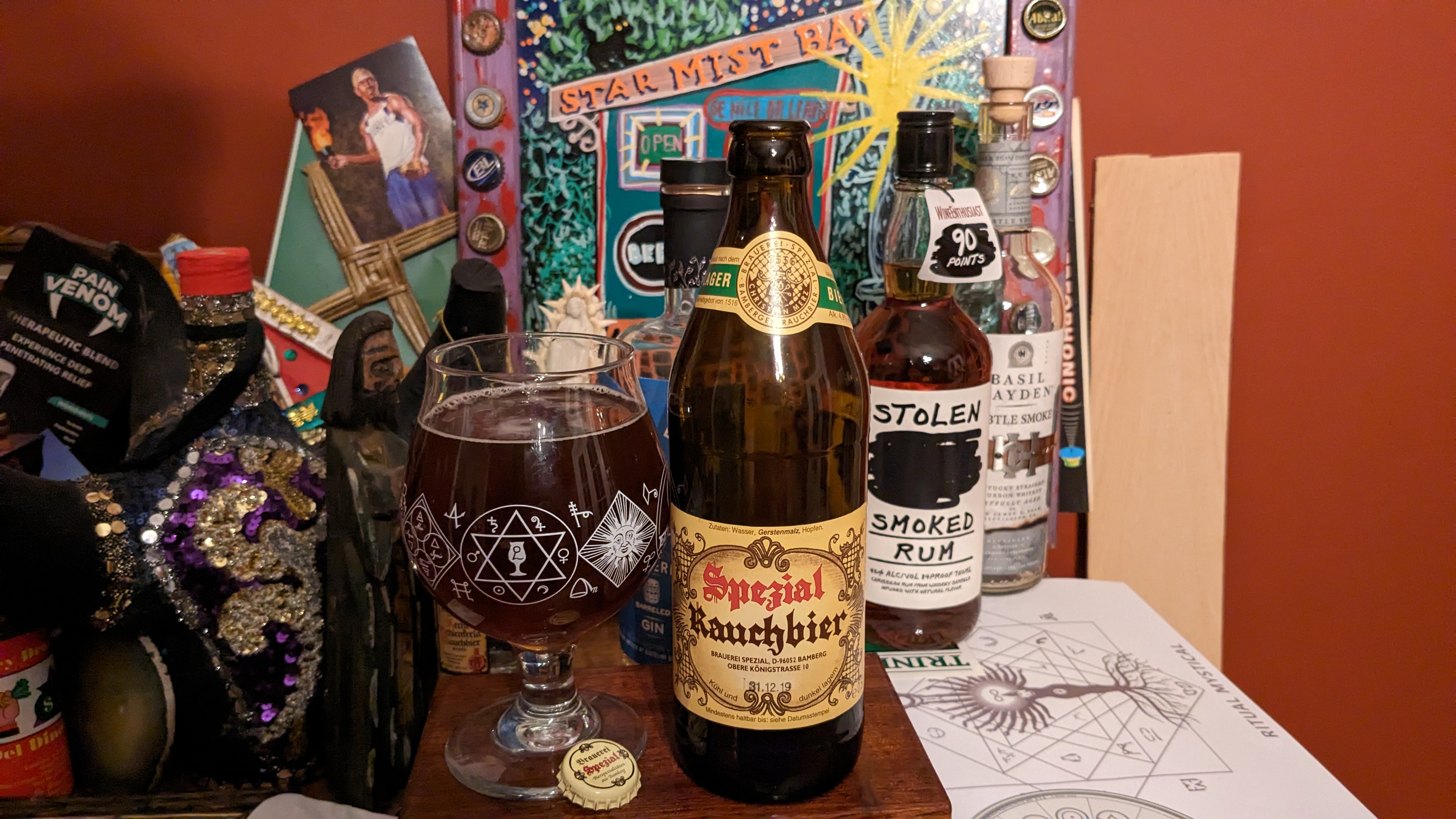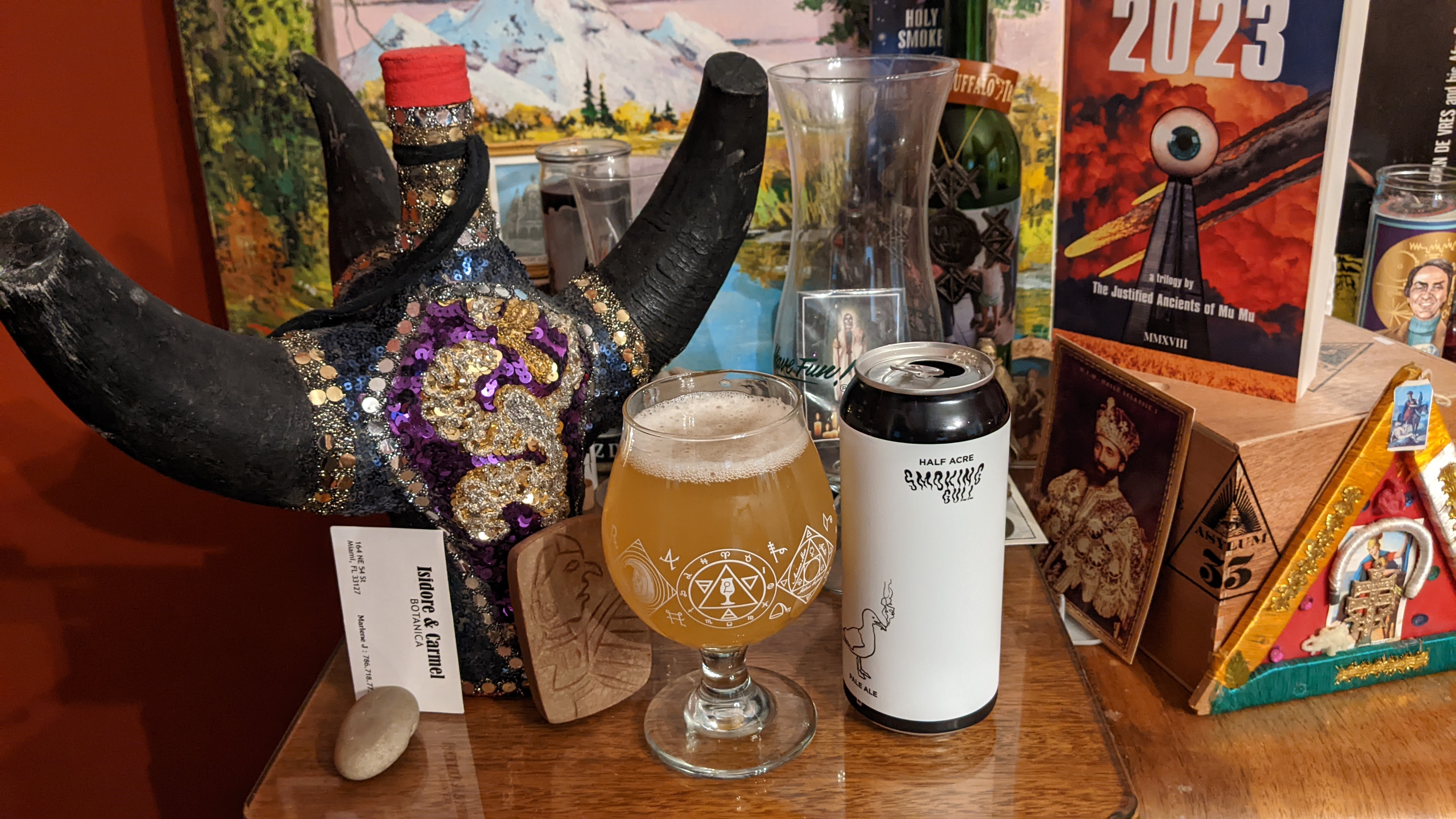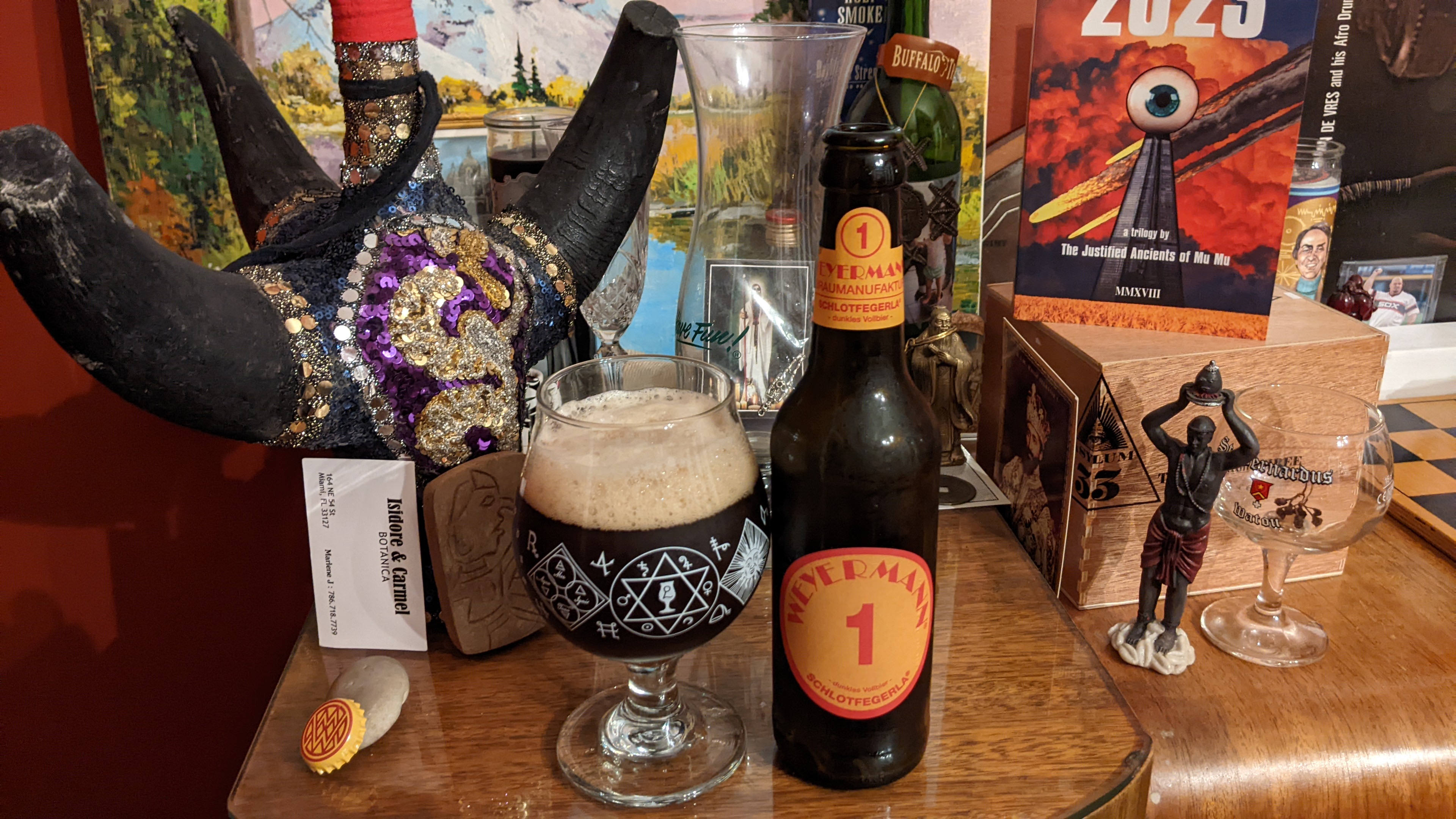 I’m in the garage today so I apologize for the rudimentary voodoo altar. But first, this beer. Pours like molasses. Looks like molasses. Thick. And the head on this is far darker than George Hamilton ever wanted to be (appears to have fizzled by the time I took the foto). Plus, 9.5% alcohol by volume, and who’s ever complained about too much booze in a beer? Not the ministry. Low on smoke which is surprising given that they used beechwood smoked malts. Notes of smoke are in there however, deep down somewhere, and pouring it over the palate doesn’t bring it to cognition more readily. No, you have to search for it, as I search for these beers. High on sweetness like the heart of a child. There is good in this beer. There is good in all of us, but sometimes we must be the seeker. I don’t find comfort in prayer, but instead in practice. And I ask that you all go forth and see the good others, and please help me find my Uber if I’m outside staggering around aimlessly. I will offer a blessing. 5.5 smokestacks awarded out of a 1-7 smokestack scale.
