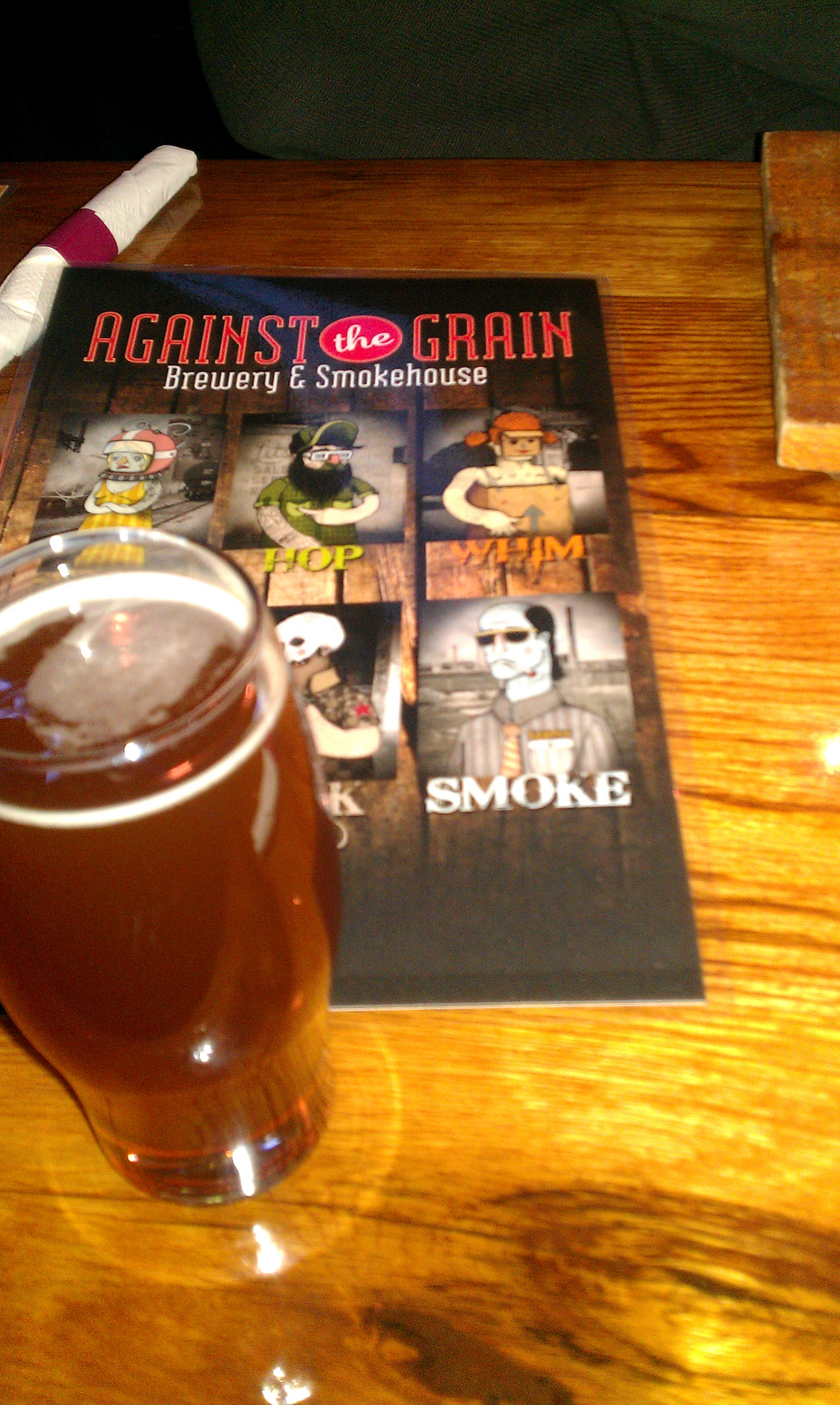 I’m glad Kentucky has bourbon to be proud of, but I don’t know why so many KY brewers are jumping on this barrel aging beer trend; it reminds me of a Simpsons episode. Wouldn’t it be great if they just focused on making bourbon taste like bourbon. Well anyway, the photo of the bourbon flight is my proof that I am a bourbon expert, and the smoke photo proves that I was at Against the Grain. And one last thing, why the crude peepee weewee jokes on the website description? It’s not kinda funny. Better luck next time AGT.