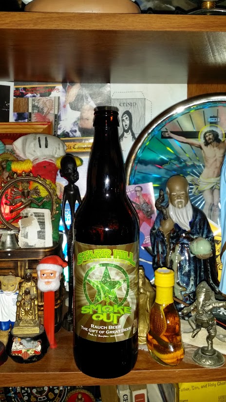 First thought = Hops? Bitter = Yes. And then I reluctantly acknowledge the smoke (I guess I was just shocked). This beer is like 2 beers in one; One at the top, and one at the bottom. I poured it just right to avoid getting all the silt down in my glass, but whatever elements I got in my glass anyway, still settled down in the glass fast enough to make the experience change while downing this one. And I hate silt. Halfway through, the bitterness is getting overpowered by the sweetness, and the smoke is still coming through, which can often either dissipate or shoot down your taste buds with too much flavor. Starr Hill musta caught The Witchdoctor on a bad night. One extra point for calling it a rauch beer. Overall Happiness: 3 Smokestacks.