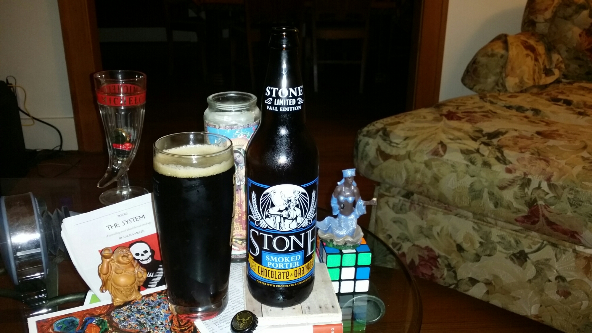 Tons of slimy orange and brown globs in the bottom… Do I need to keep writing? You’ve already seen what flavors they’ve dumped into their marginally acceptable smoked porter beer, so I don’t know if I need to continue. The chocolate I smell in it reminds me of a scratch ‘n’ sniff sticker. The color is pretty dark (5.5) but not too dense and light can shine right through. Its undeniably Stone Smoked Porter with added flavors in it, so if you love their smoked porter, this might be your beer, but I doubt it. I will add one point for having the regular Smoked Porter the most ubiquitous smoked beer in the US, but the taste provided in the Chocolate and Orange rendition deducts a bunch of points. Ambivalence is a tough place to build a foundation on, so as I neared the end of the pour, it was easy for me to find disgust when a solid inch of brown and orange globs plopped out of this beer. I do find it telling that on the Stone website you’ll find a blame shifting “you asked for it” beer link. Final score 2 smokestacks out of 7.