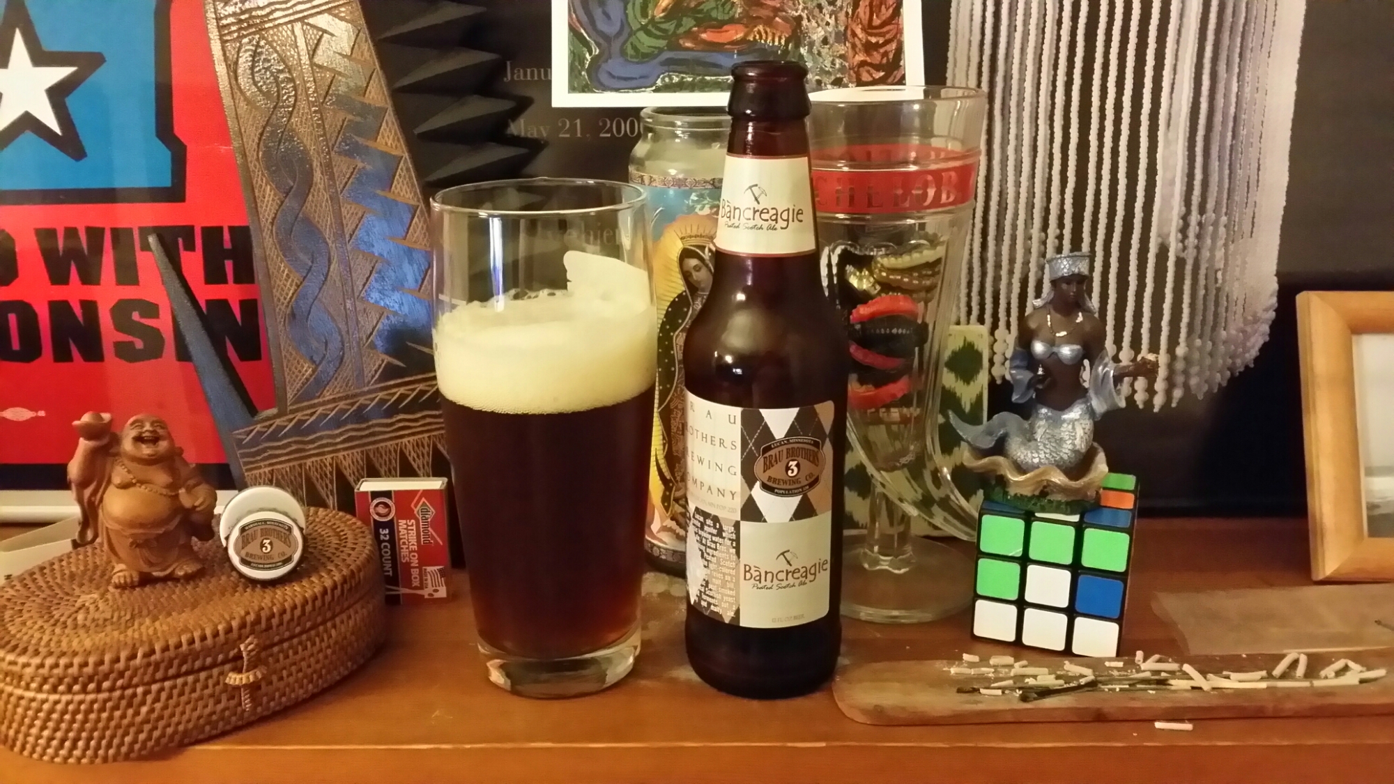 | Brewer’s Description | Bancreagie (Bon-cray-gee) means “Valley of the White Rock,” an homage to the granite aquifer sitting under the brewery. An American interpretation of a Scotch ale, we use Golden Promise, caramel malts, and roasted barley to form the backbone of this beer, while two different kinds of smoked malt add a unique earthy and bacon-y quality. This beer demands some fine barbecue, and so do we. Bring some over. |