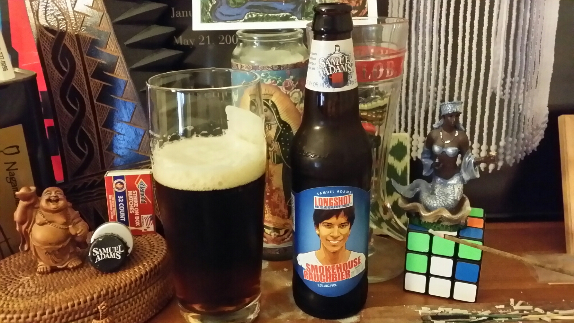 Who is this pretty boy on the label? His name is Samuel Adams Longshot, and he is the one responsible for the idea of a contest where people send in their homemade beer in search of something Boston Beer Company can sell, at least that’s what I gathered from the label. Samuel Longshot produced a very good beer… but not a very good smokebeer. The last beer SBM reviewed went much the same way, where it seemed the brewer went out of their way to use high quality (and expensive) ingredients, and then held back those ingredients from doing what they were designed to do. I presume the marketing team had a say in the matter, along with the warehouse, and I understand, a company can’t keep the show going if they can’t move the product. Sip after sip (and a few chugs) and I swear this is getting smokier and smokier. But it never reached out of the glass and punched me in the nose. It tastes like Bamberg Beechwood smoked malts were used. It tastes like a good beer. It’s a good sipping beer, but not much of a savoring beer. I still just may buy a sixer of this when I get a chance. Overall Happiness Factor – 4.5 out of 7.
